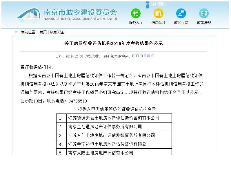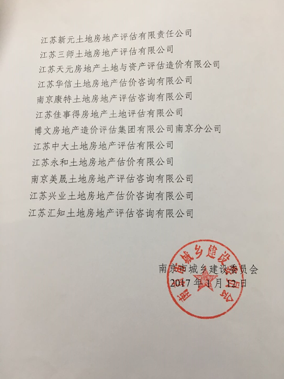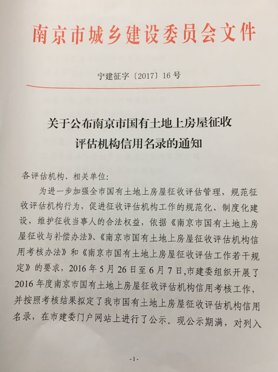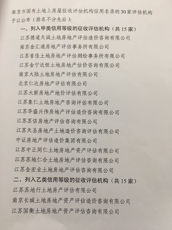 南京市国有土地上房屋征收评估机构信用名录第2名