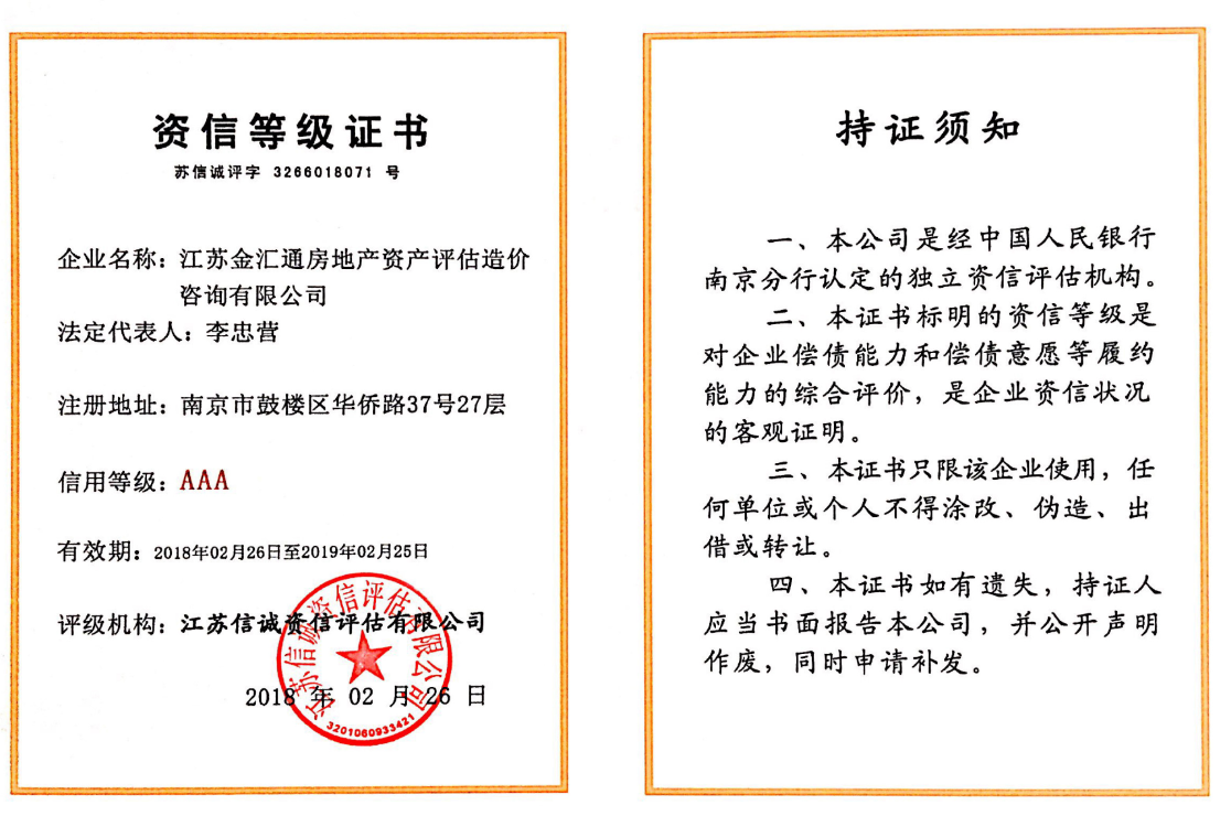 江苏金汇通房地产资产评估造价咨询有限公司