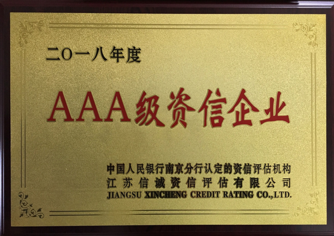 经过公司各部门的共同努力,我公司获得2018年度AAA级资信企业称号!