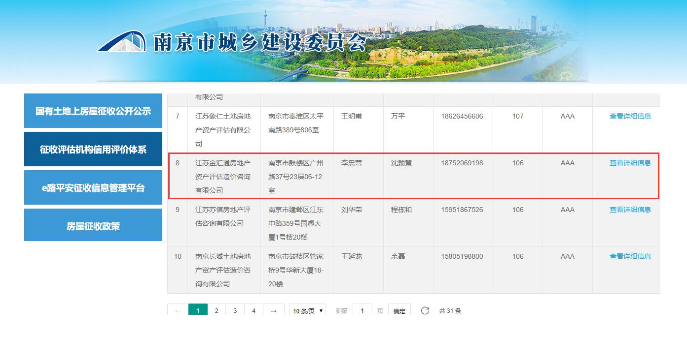 热烈祝贺我公司在南京市征收评估机构信用等级中荣获“信用名录AAA级”