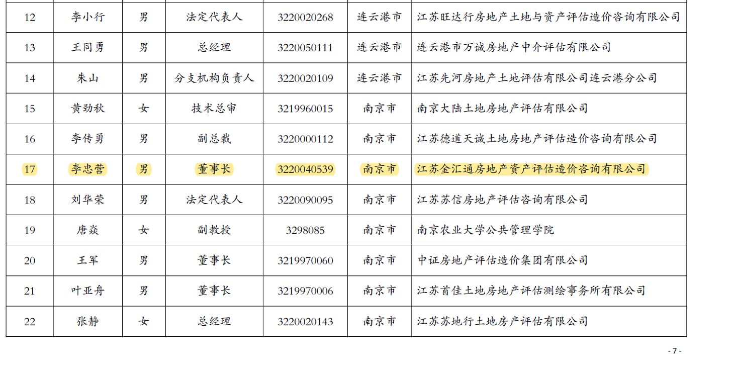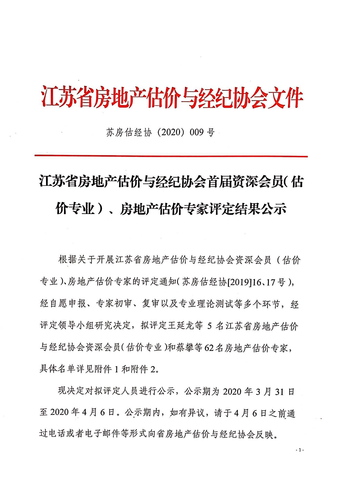 祝贺我公司董事长李忠营先生入选江苏省房地产估价与经纪协会房地产估价专家拟评定人员名单。