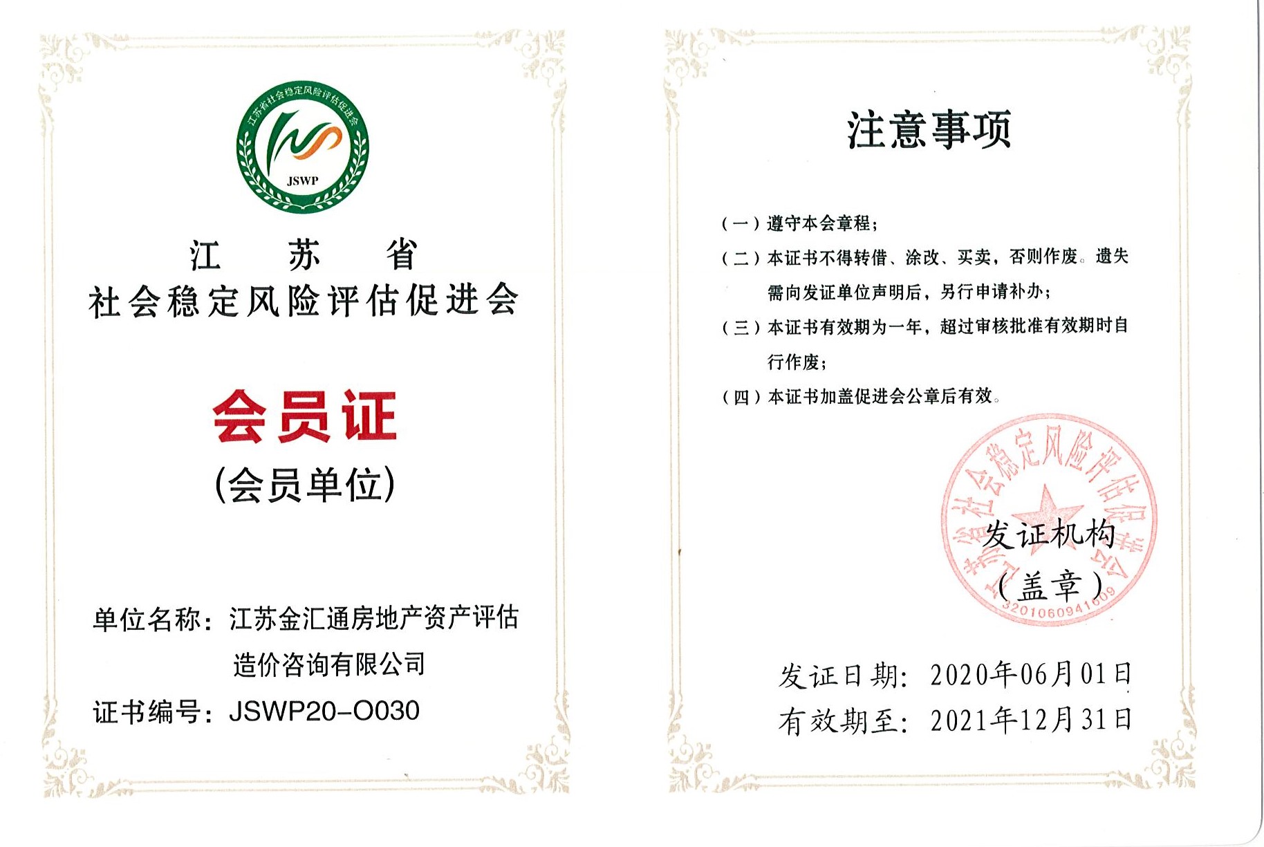 我公司成为江苏省社会稳定风险评估促进会会员单位!